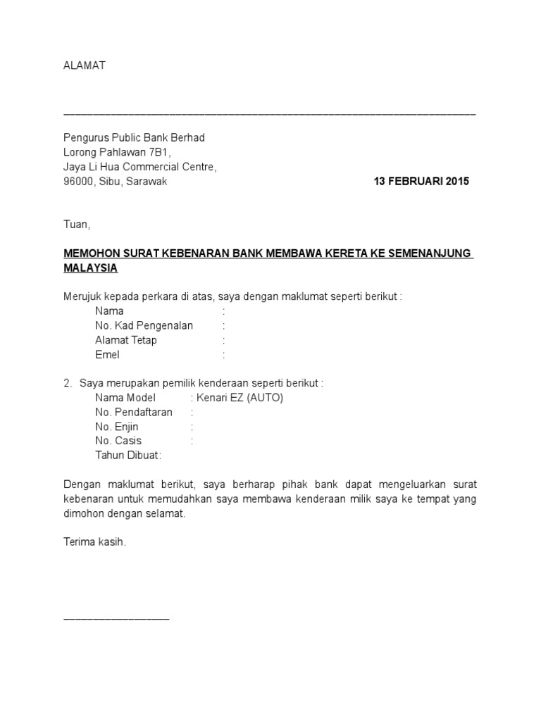 Surat Kebenaran Bank Bawa Kereta Sarawak Klang Pdf