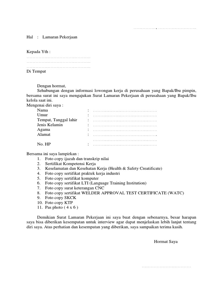 Contoh Surat Lamaran Kerja Welding